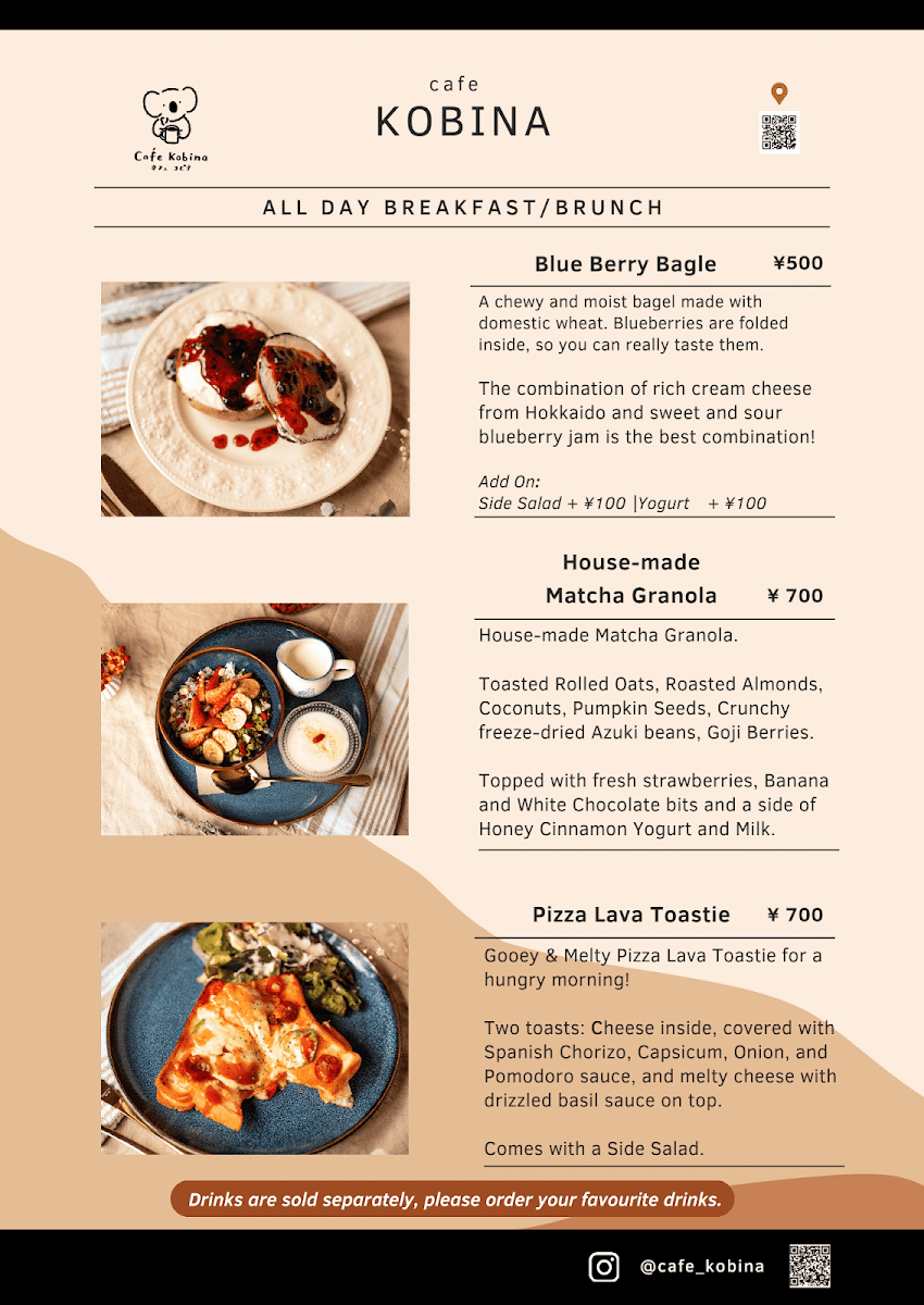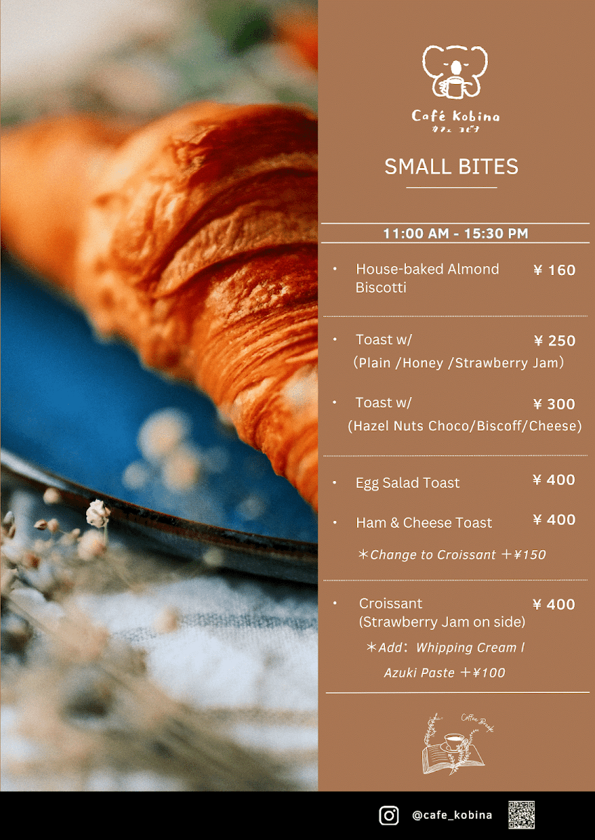 Cafe Kobina boasts an array of delectable coffee options, each crafted with care and precision. Try the Kobina Blend Coffee (JP¥450) for a truly local flavor or indulge in the creamy richness of a Caramel Latte (JP¥650) topped with luscious whipped cream. If you’re looking for something refreshing, their Iced Mocha (JP¥650) is a deliciously chilled treat, perfect for beating the heat. Customers rave about the Espresso (JP¥400) — bold and invigorating, it’s a great way to kickstart your day.